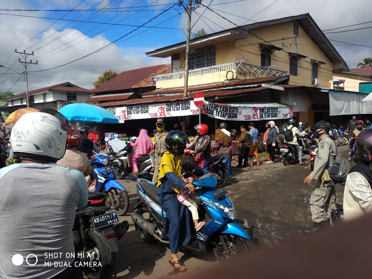 Satuan Polisi Pamong Praja Kab. Kapuas Hulu mengatur dan mengamankan lalu lintas di pasar pagi putussibau akibat banjir yang menggenangi kawasan Pasar pagi putussibau, puluhan pedagang di pasar tersebut terpaksa pindah berdagang di badan jalan, selasa (8/9/2020).