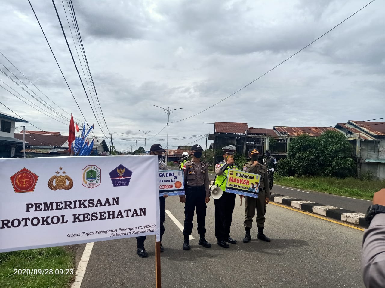 Satuan Polisi Pamong Praja (Satpol PP) Kabupaten Kapuas Hulu bersama TNI – Polri dan Dinas Kesehatan Kabupaten Kapuas Hulu menggelar razia masker untuk pengendara yang melintas di sepanjang jalan Putussibau dan kedamin, senin (28/9/2020)