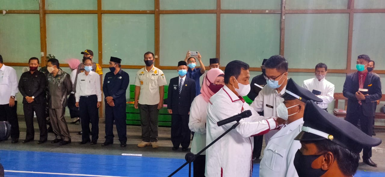Kepala Bidang Penegakan Operasi Satuan Polisi Pamong Praja Kapuas Hulu Edy Suhardi, S.Sos wakili Kasat Pol PP dalam rangka pengambilan sumpah janji dan pelantikan dua orang kepala desa terpilih antara waktu (PAW) periode jabatan 2021 – 2024 dan pelantikan badan permusyawartan desa (BPD) se kecamatan Putussibau Selatan,di Gedung Serbaguna Kecamatan Putussibau Selatan, Rabu 10 Februari 2021.