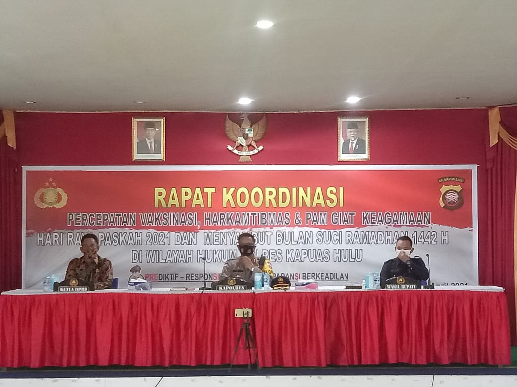 Dalam rangka menyambut Perayaan Hari Raya Paskah oleh Umat Kristiani dan menyambut Bulan Ramadhan serta Perayaan Hari Raya Idul Fitri 1442 H oleh Umat Islam maka diadakannya Rapat Koordinasi Percepatan Vaksin dan Pengamanan Kegiatan Keagamaan di Wilayah Kab. Kapuas Hulu. Kamis (1/04/2021) di Aula Bank Kalbar Putussibau.
