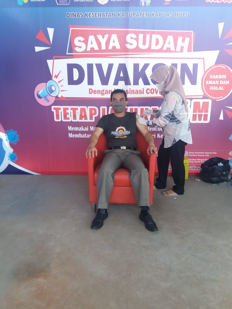 Satuan Polisi Pamong Praja Kab. Kapuas Hulu, Kasat Pol PP Rupinus S.Sos, M.Si, menerima suntik vaksin Covid-19 tahap ke 2 yang digelar Pemerintah Kabupaten Kapuas Hulu bertempat di Dinas Kesehatan Kab. Kapuas Hulu, Kamis siang (1/4/2021).