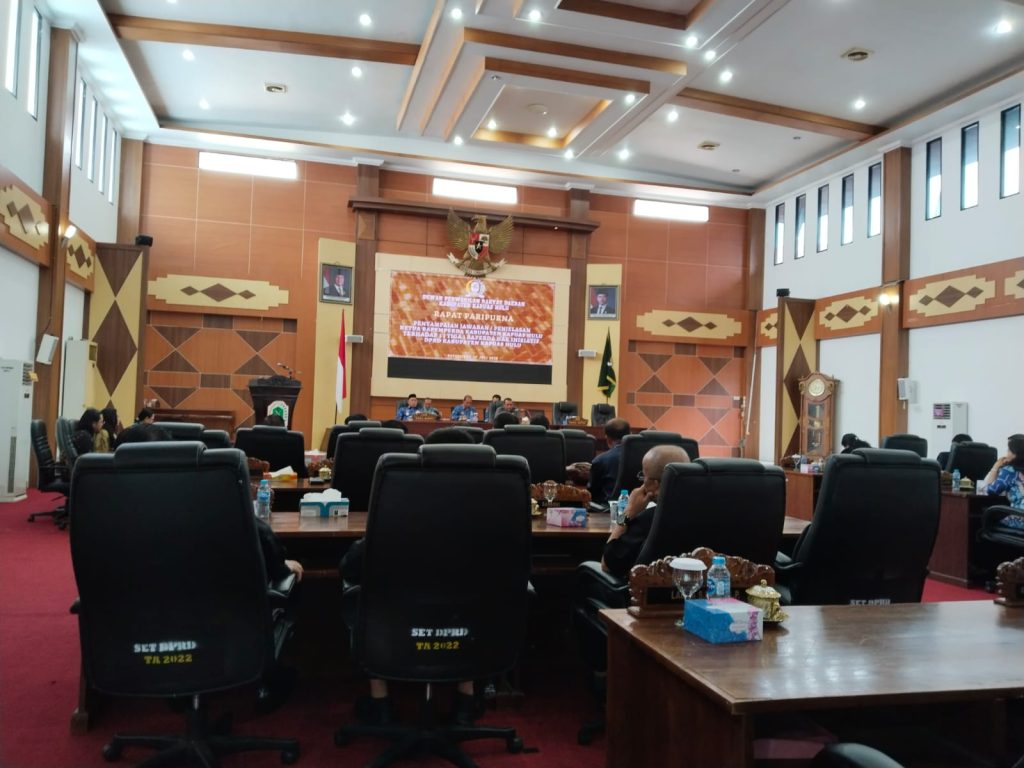 Sekertaris Satuan Polisi Pamong Praja (Satpol PP) Kabupaten Kapuas Hulu, Walidad, S.E, M.Si menghadiri Rapat Paripurna DPRD Kabupaten Kapuas Hulu dalam rangka Penyampaian Jawaban/Penjelasan Ketua Badan Pembentukan Peraturan Daerah (BAPEMPERDA) terhadap tiga Rancangan Peraturan Daerah (Raperda) Hak Inisiatif DPRD, pada hari Kamis (17/7/2025).