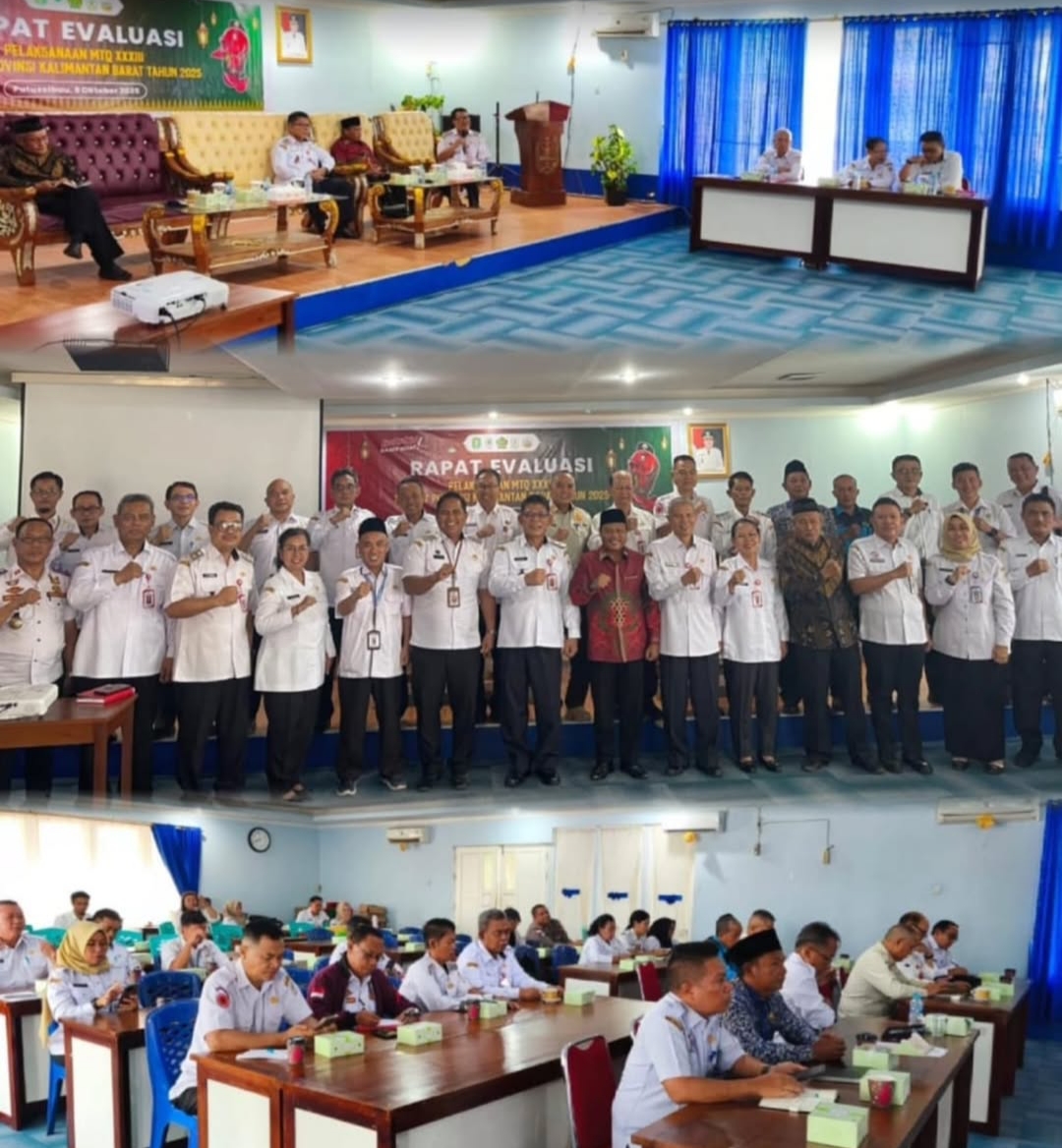 PUTUSSIBAU – Kepala Satuan Polisi Pamong Praja (Satpol PP) Kabupaten Kapuas Hulu Bahtiar, S.P, M.Si menghadiri Rapat Evaluasi Panitia Pelaksanaan Musabagah Tilawatil Qur’an (MTQ) ke-XXXIIl tingkat Provinsi Kalimantan Barat yang telah sukses diselenggarakan di Kabupaten Kapuas Hulu pada 14-20 September 2025 lalu. Rapat evaluasi tersebut berlangsung di Aula Kantor Badan Perencanaan Pembangunan Daerah (Bappeda) Kabupaten Kapuas Hulu pada Rabu (8/10/2025).