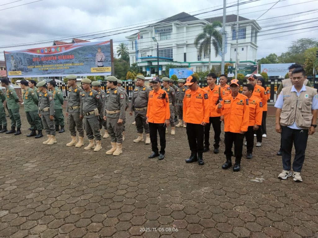 Kepala Satuan Polisi Pamong Praja (Satpol PP) Kabupaten Kapuas Hulu Bahtiar, S.P, M.Si berserta 15 anggota Satpol PP menghadiri undangan Apel Gelar Pasukan dalam rangka kesiapan menghadapi potensi bencana akibat cuaca ekstrem dan bencana hidrometeorologi. Kegiatan tersebut digelar di halaman Mapolres Kapuas Hulu pada Rabu (5/11/2025).